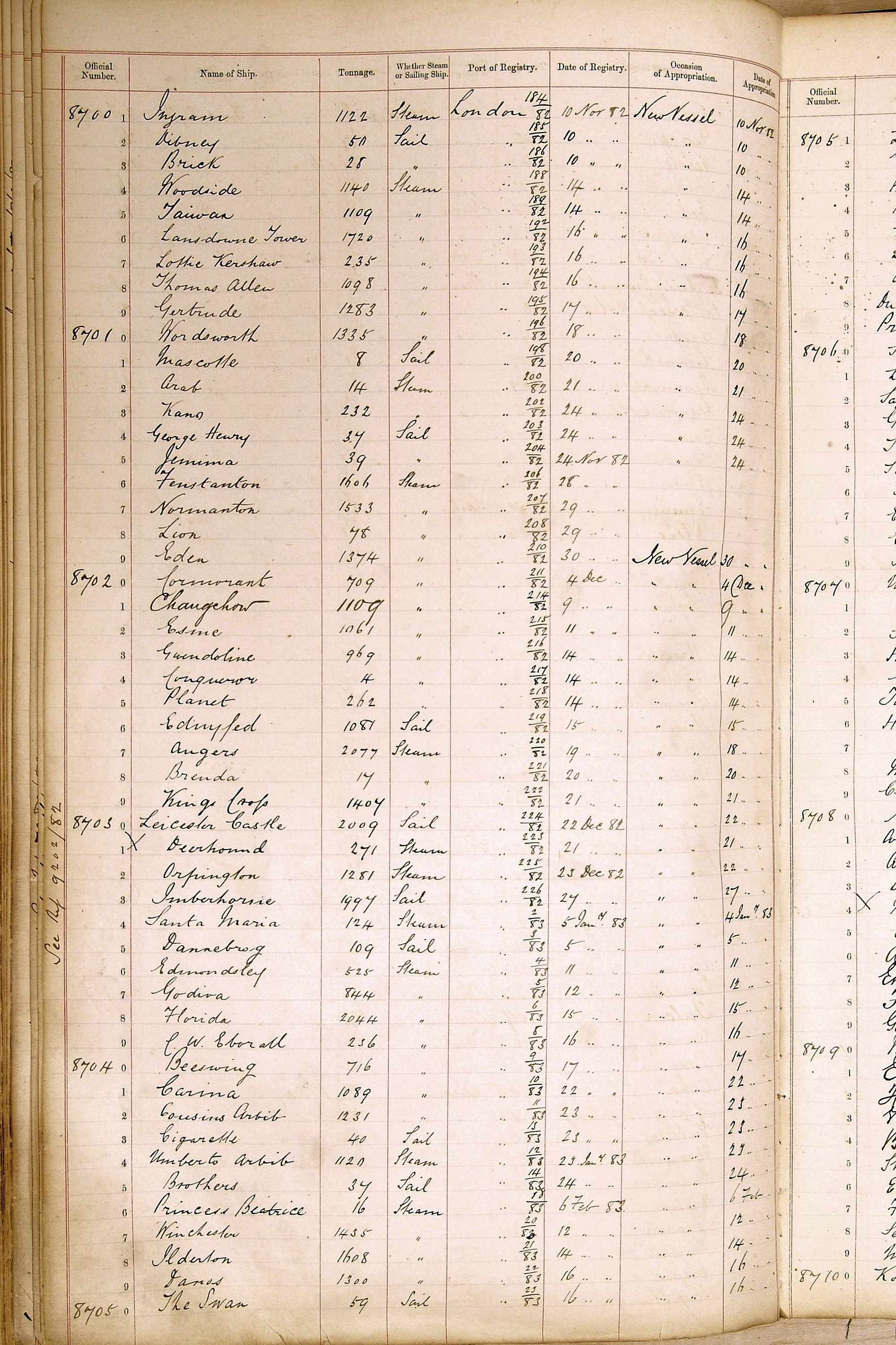 The ship names recorded are those that the ships carried at the time that their official numbers were allocated - changes are sometimes noted, but the best source for changes of name are the shipping registers for the port, or alternatively the Mercantile Navy List.