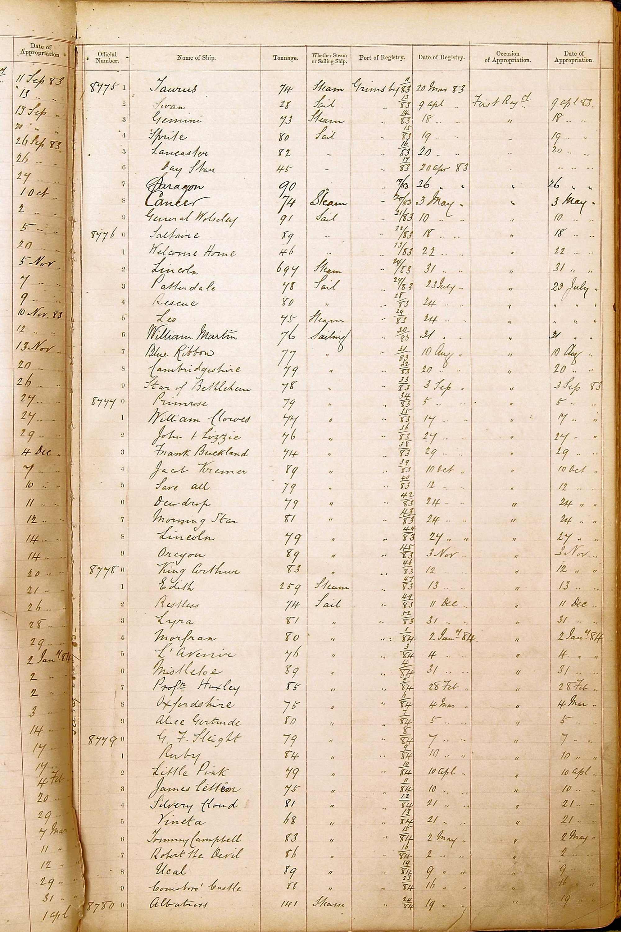 The ship names recorded are those that the ships carried at the time that their official numbers were allocated - changes are sometimes noted, but the best source for changes of name are the shipping registers for the port, or alternatively the Mercantile Navy List.