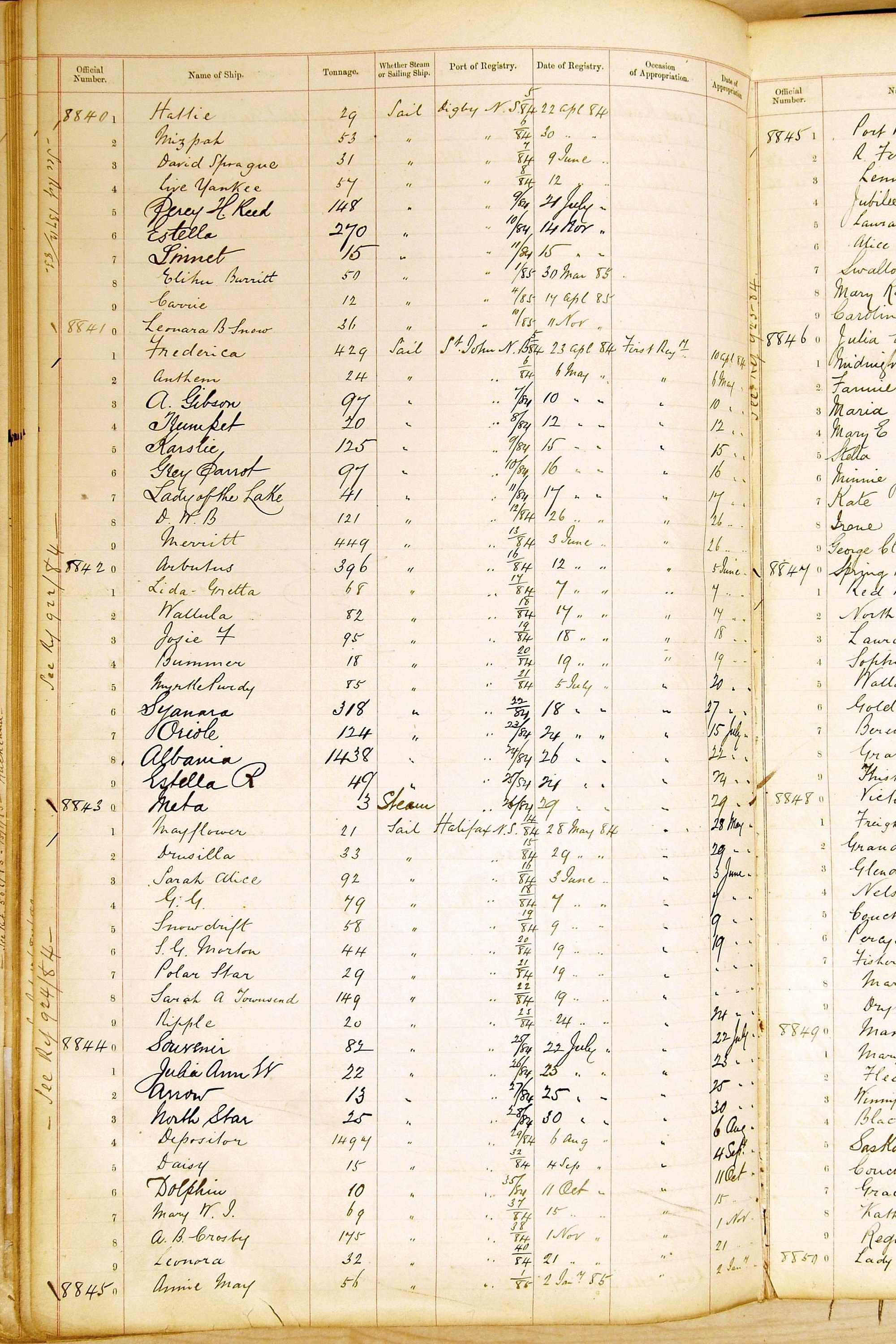 The ship names recorded are those that the ships carried at the time that their official numbers were allocated - changes are sometimes noted, but the best source for changes of name are the shipping registers for the port, or alternatively the Mercantile Navy List.