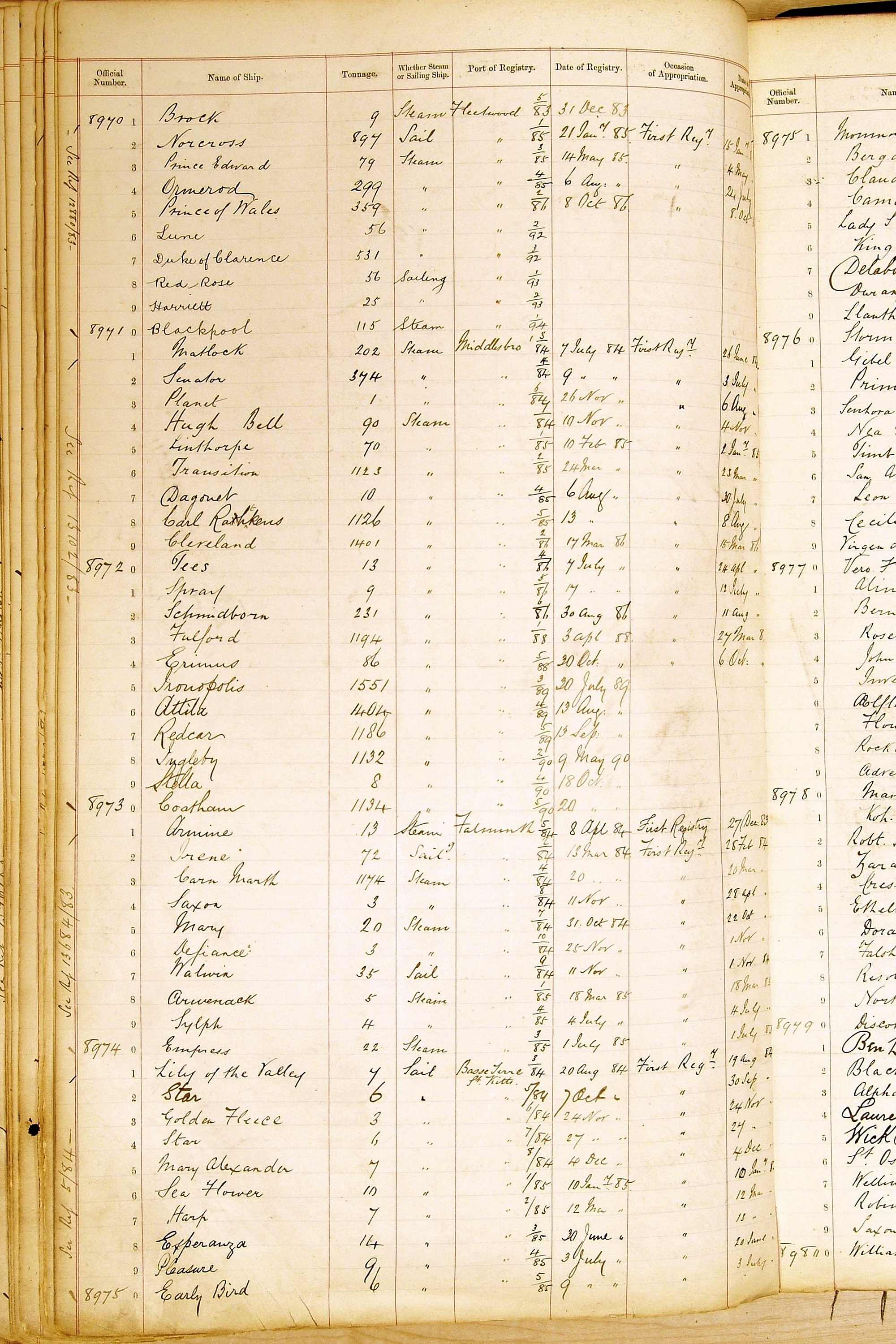 The ship names recorded are those that the ships carried at the time that their official numbers were allocated - changes are sometimes noted, but the best source for changes of name are the shipping registers for the port, or alternatively the Mercantile Navy List.