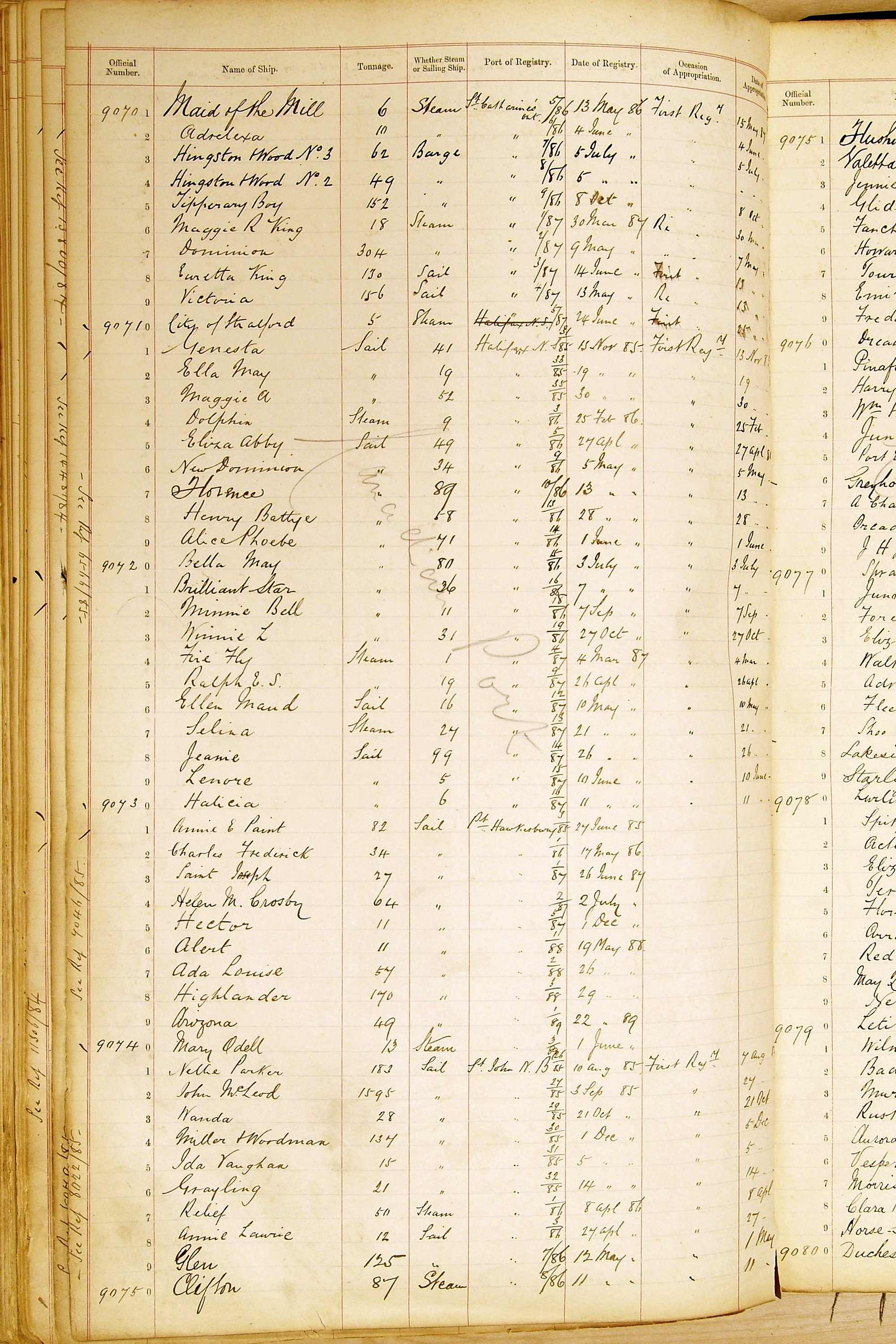 The ship names recorded are those that the ships carried at the time that their official numbers were allocated - changes are sometimes noted, but the best source for changes of name are the shipping registers for the port, or alternatively the Mercantile Navy List.