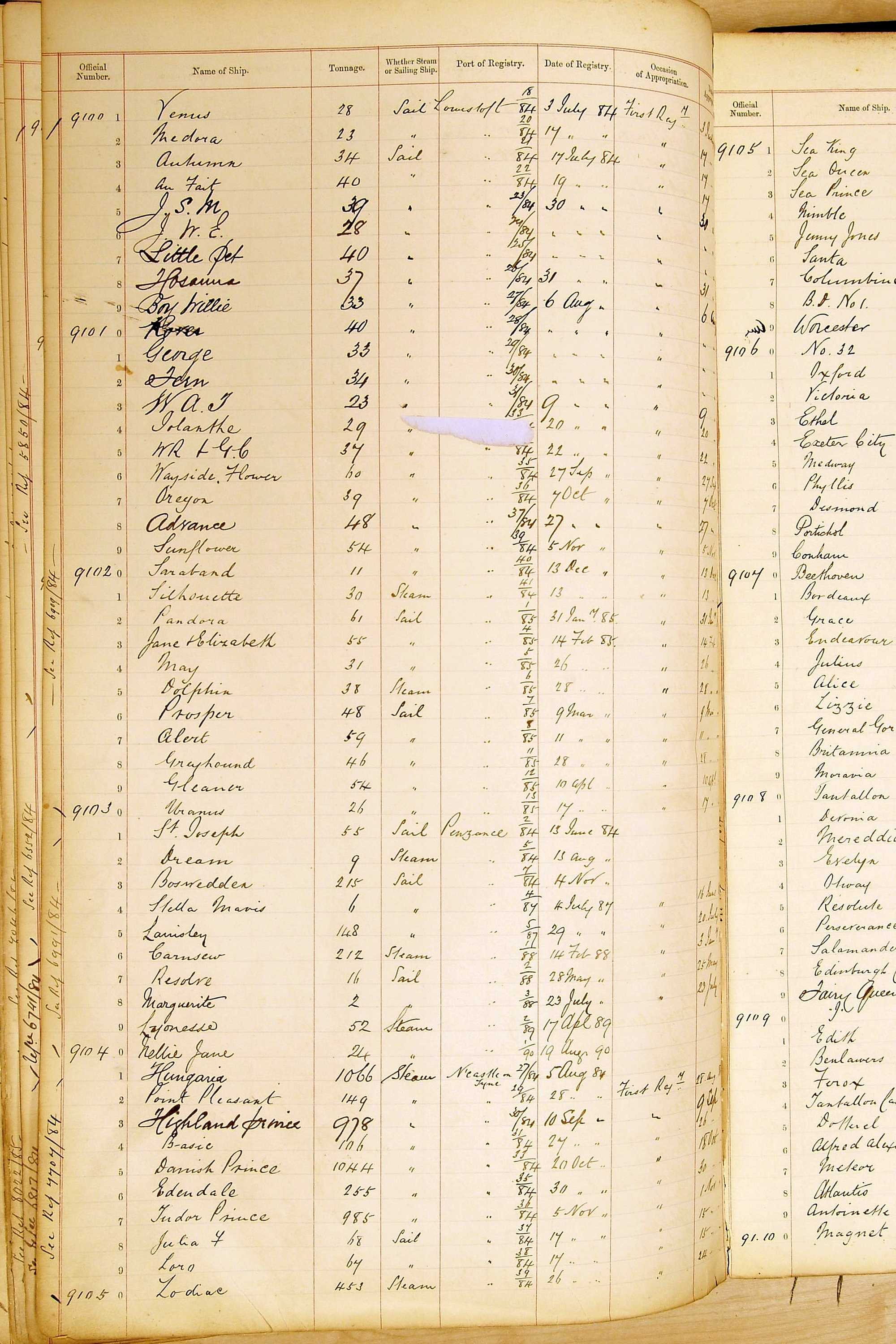 When the system of official numbers began on 16 April 1855, the British Ports of Registry were each allocated batches of official numbers. For official numbers up to 22200 you can see this allocation as a pencil note at the top of the page where the allocation began. A summary of the first allocation is shown here: Initial allocation of official numbers