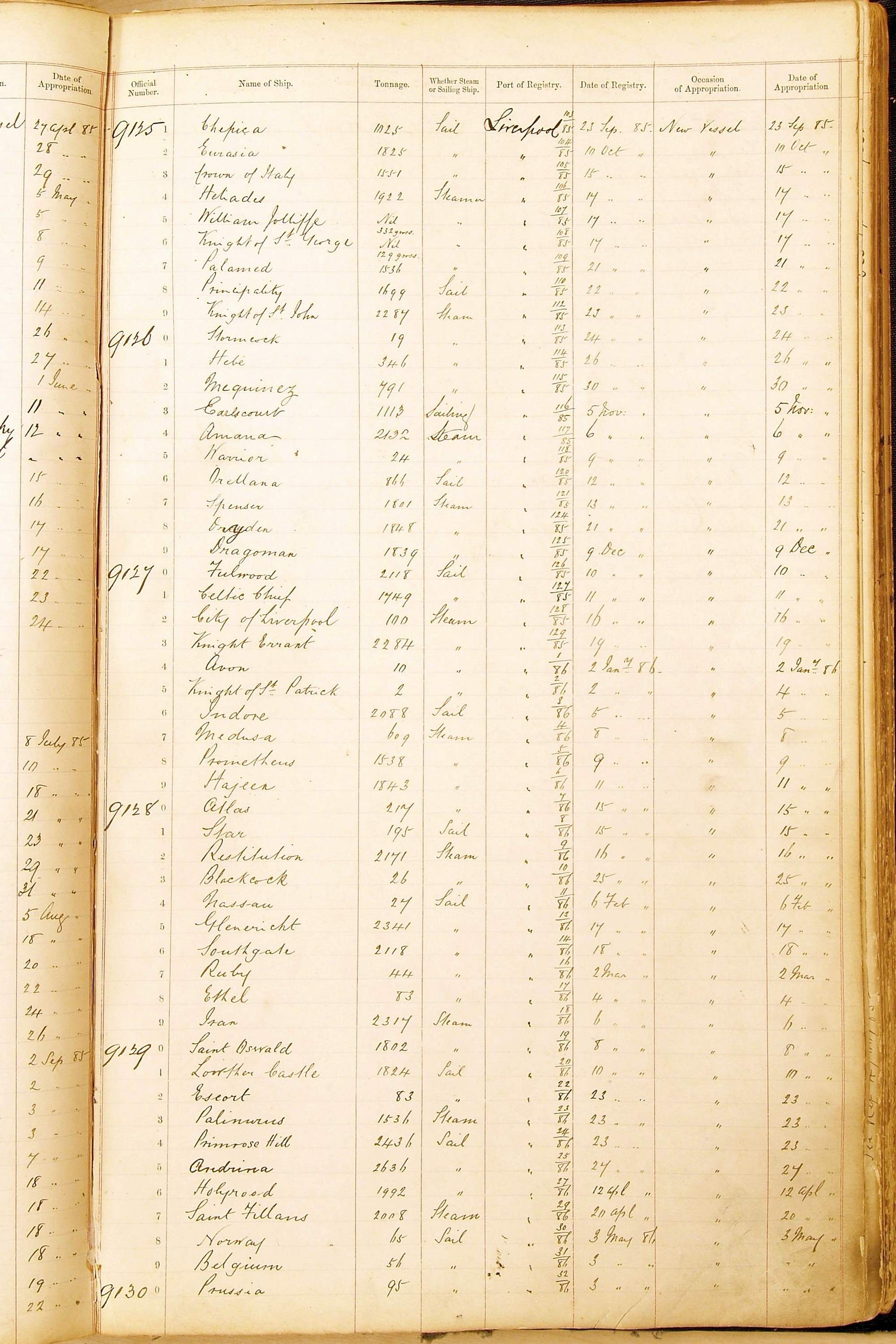 The ship names recorded are those that the ships carried at the time that their official numbers were allocated - changes are sometimes noted, but the best source for changes of name are the shipping registers for the port, or alternatively the Mercantile Navy List.