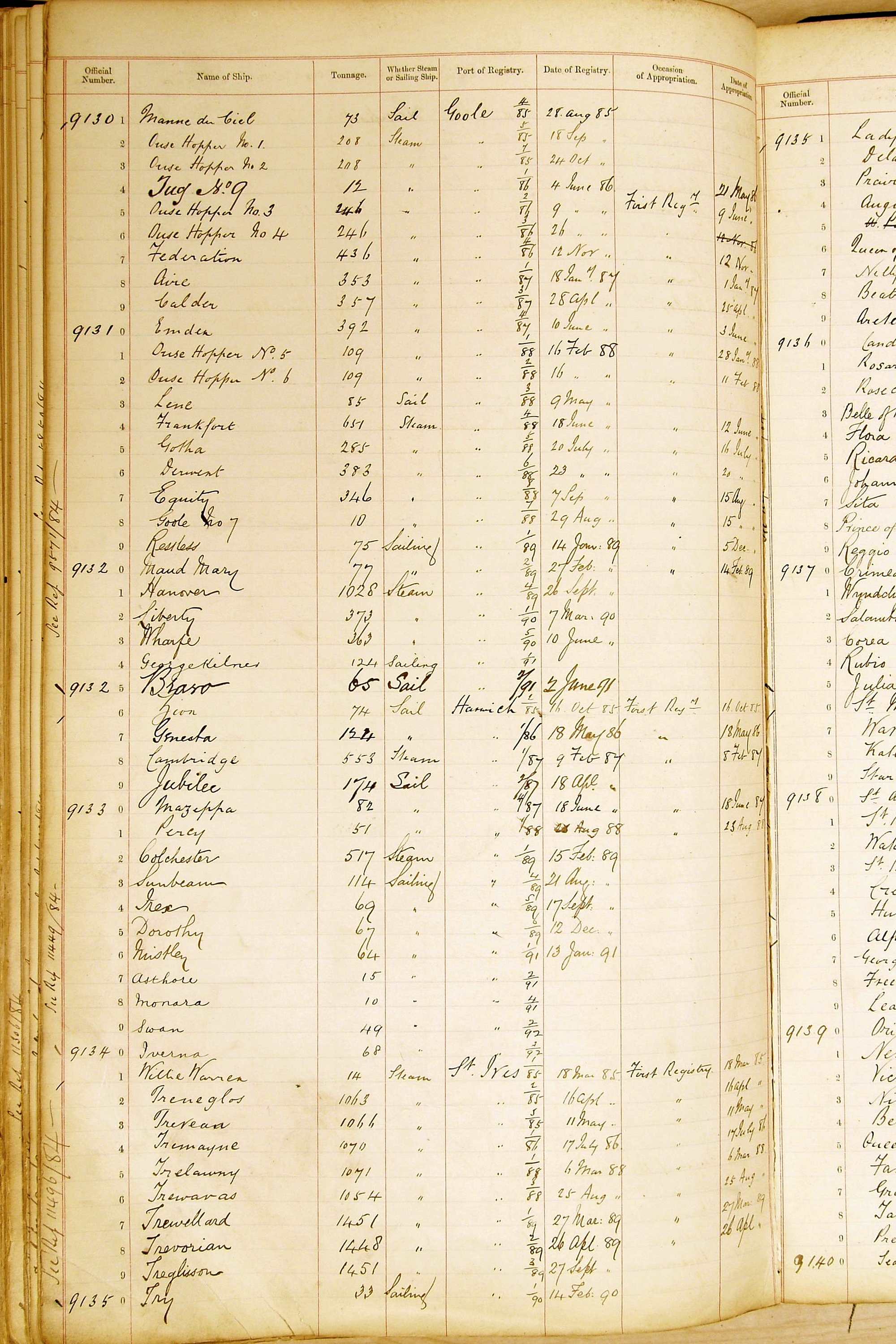 The ship names recorded are those that the ships carried at the time that their official numbers were allocated - changes are sometimes noted, but the best source for changes of name are the shipping registers for the port, or alternatively the Mercantile Navy List.