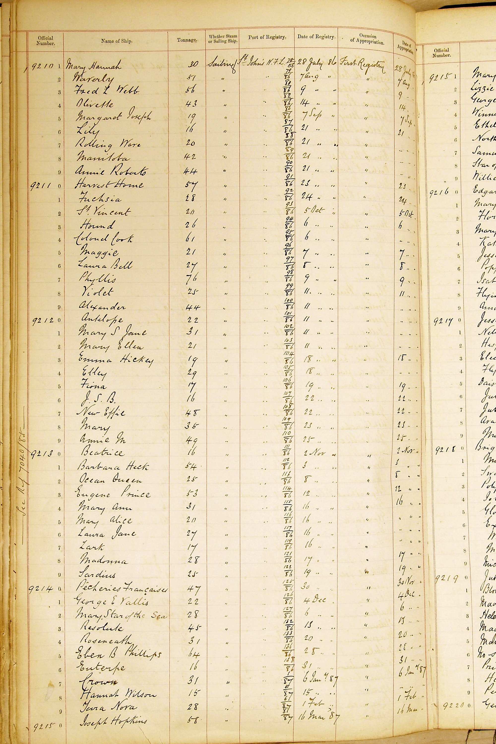 When the system of official numbers began on 16 April 1855, the British Ports of Registry were each allocated batches of official numbers. For official numbers up to 22200 you can see this allocation as a pencil note at the top of the page where the allocation began. A summary of the first allocation is shown here: Initial allocation of official numbers