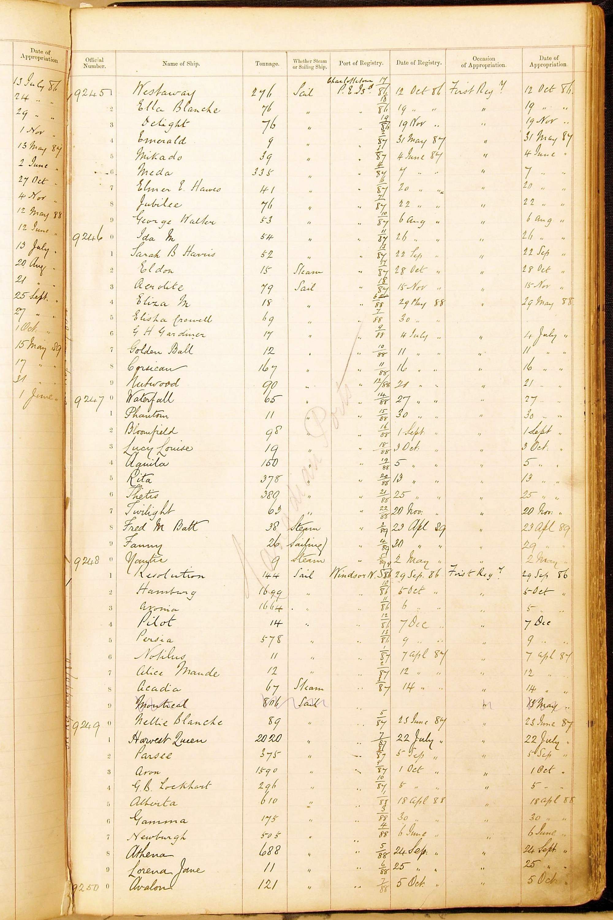 Bear in mind that the ships names in the Appropriation Books are not the definitive name or spelling of the name, even though these are the central records for the whole system. As you can see, the entries are hand-written and derived from hand-written returns made by the various ports, themselves based on the hand-written shipping registers, based on what the port officials thought the person registering the ship was saying or had hand-written down.