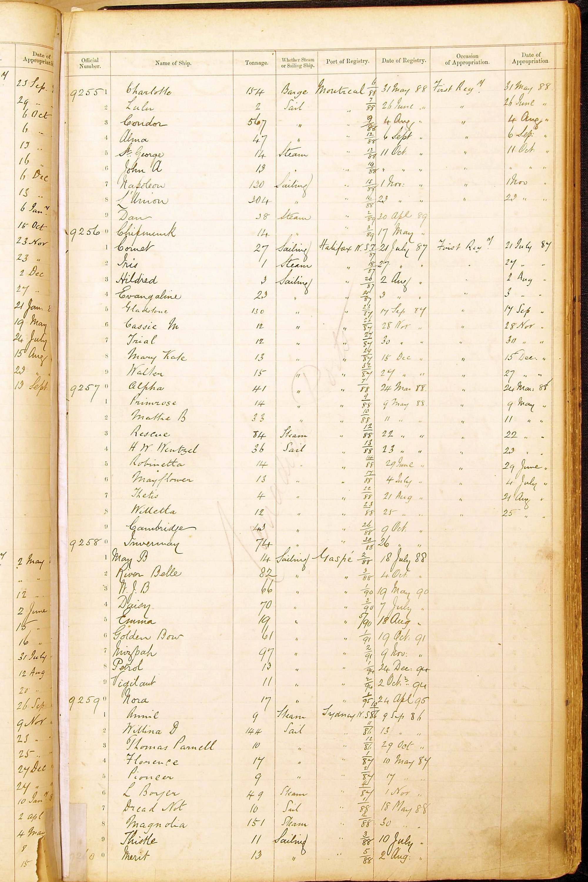 Bear in mind that the ships names in the Appropriation Books are not the definitive name or spelling of the name, even though these are the central records for the whole system. As you can see, the entries are hand-written and derived from hand-written returns made by the various ports, themselves based on the hand-written shipping registers, based on what the port officials thought the person registering the ship was saying or had hand-written down.