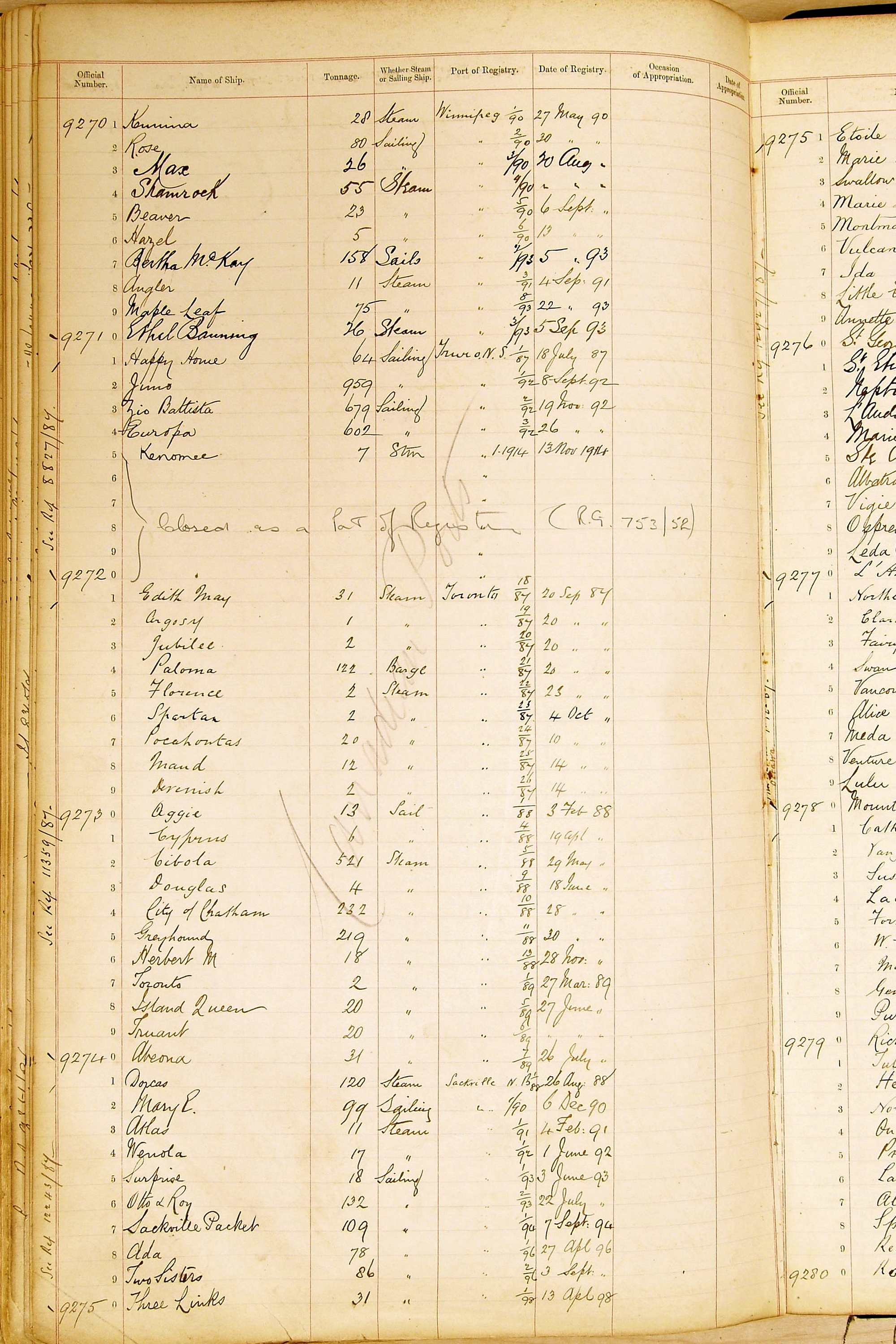 The ship names recorded are those that the ships carried at the time that their official numbers were allocated - changes are sometimes noted, but the best source for changes of name are the shipping registers for the port, or alternatively the Mercantile Navy List.