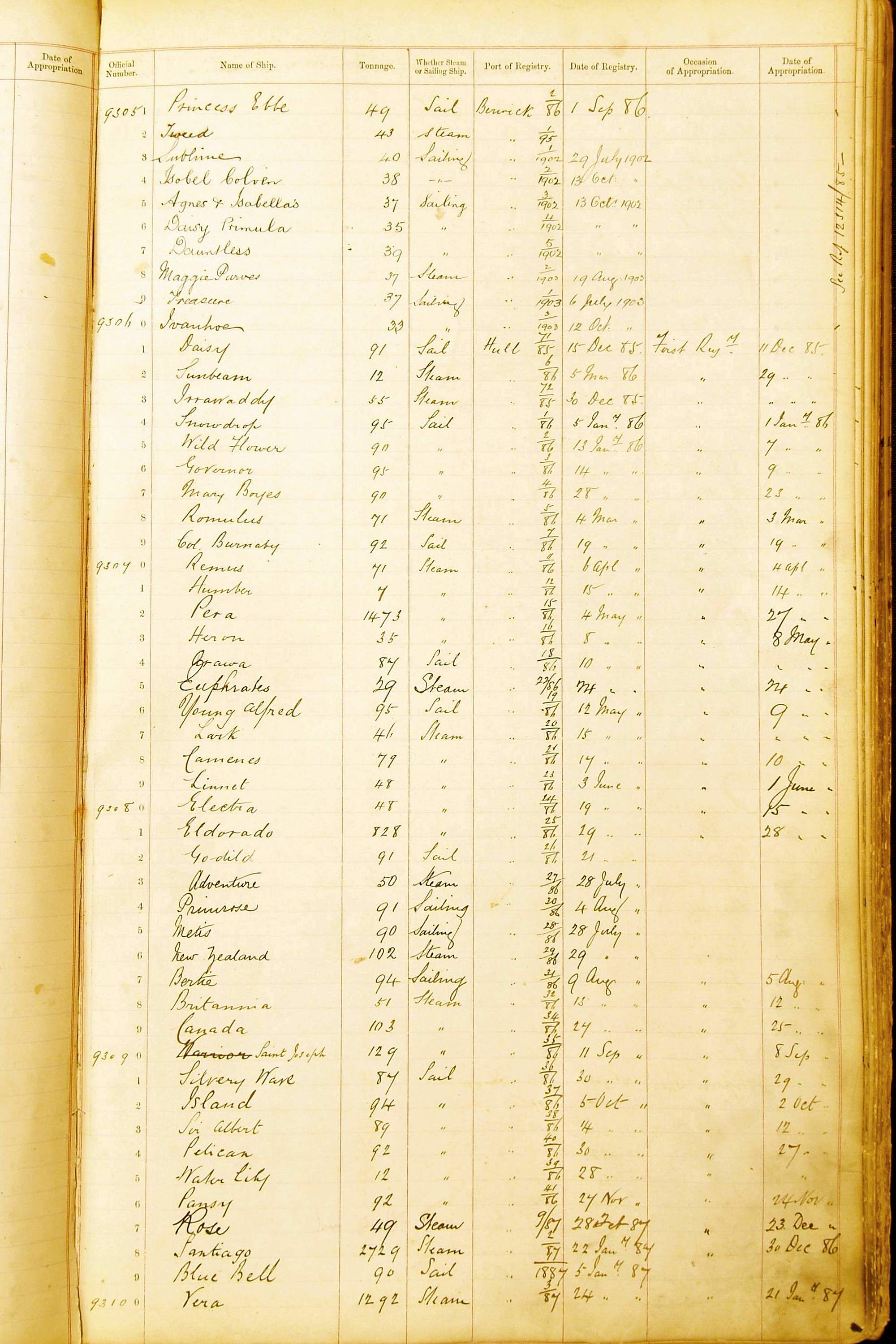 Bear in mind that the ships names in the Appropriation Books are not the definitive name or spelling of the name, even though these are the central records for the whole system. As you can see, the entries are hand-written and derived from hand-written returns made by the various ports, themselves based on the hand-written shipping registers, based on what the port officials thought the person registering the ship was saying or had hand-written down.