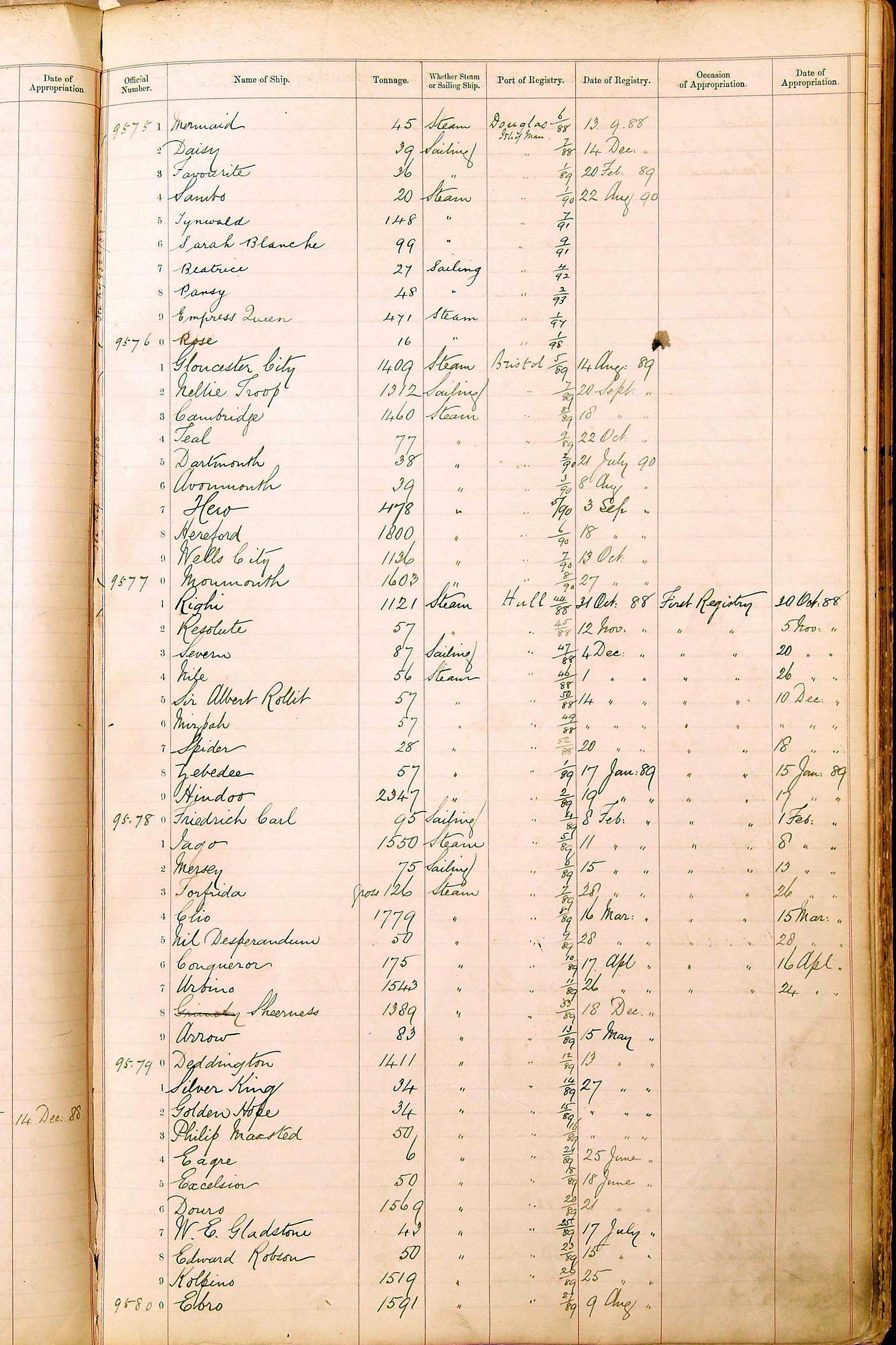 Bear in mind that the ships names in the Appropriation Books are not the definitive name or spelling of the name, even though these are the central records for the whole system. As you can see, the entries are hand-written and derived from hand-written returns made by the various ports, themselves based on the hand-written shipping registers, based on what the port officials thought the person registering the ship was saying or had hand-written down.