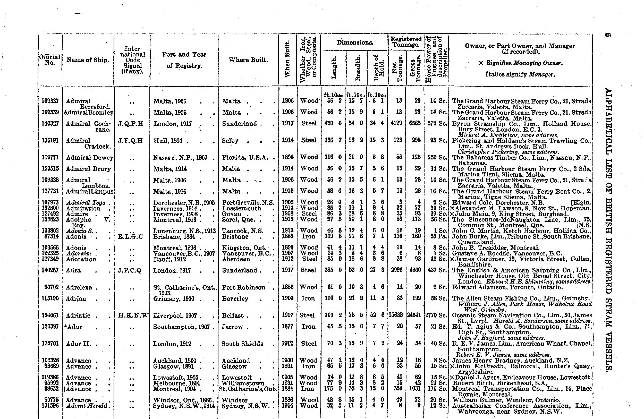 Mercantile Navy List, 1918, page 6