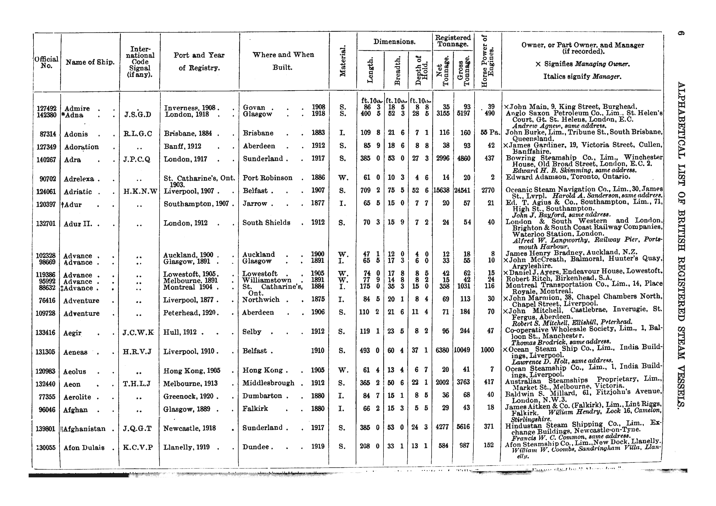 Mercantile Navy List, 1922, page 6