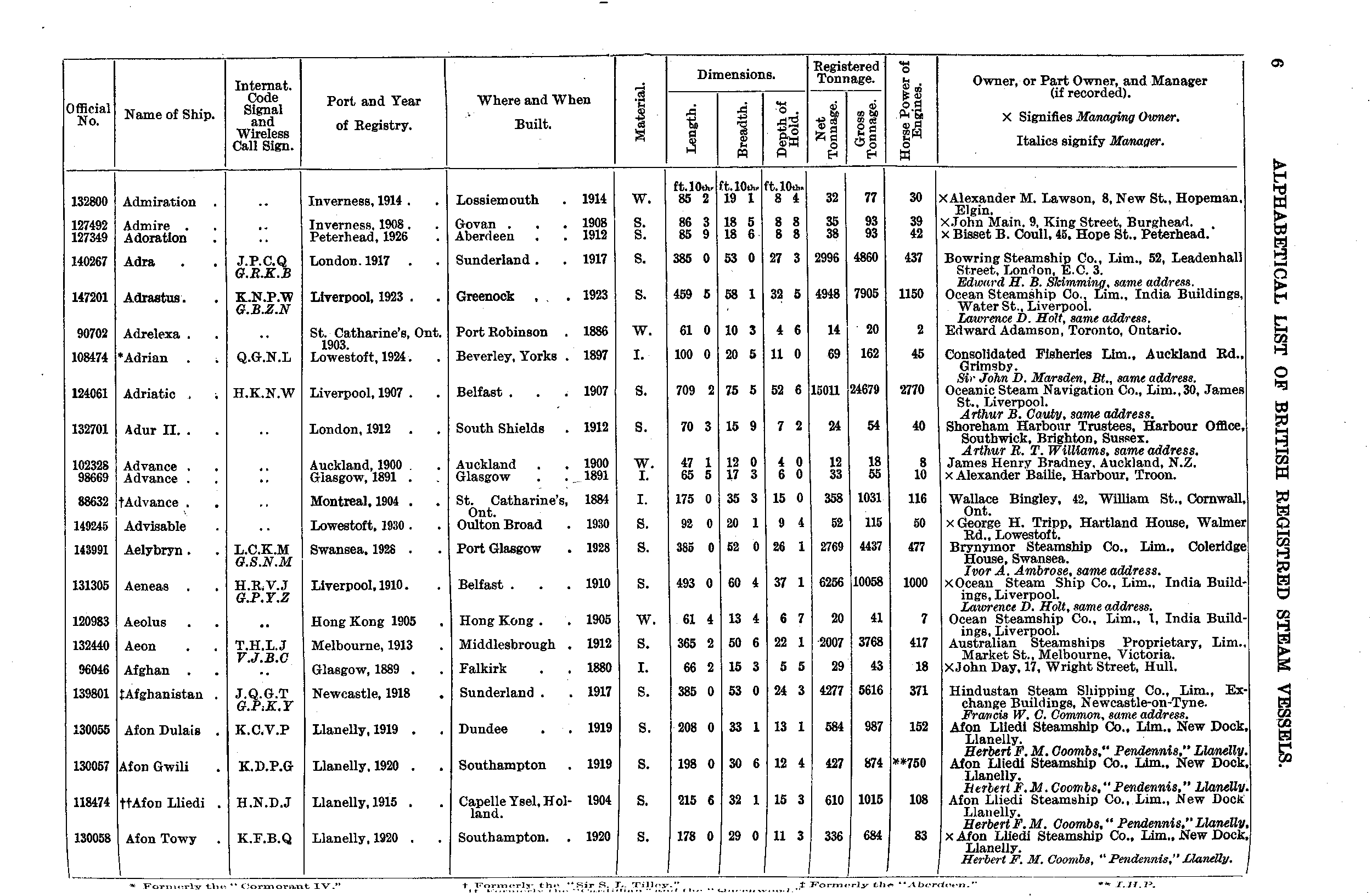 Mercantile Navy List, 1931, page 6
