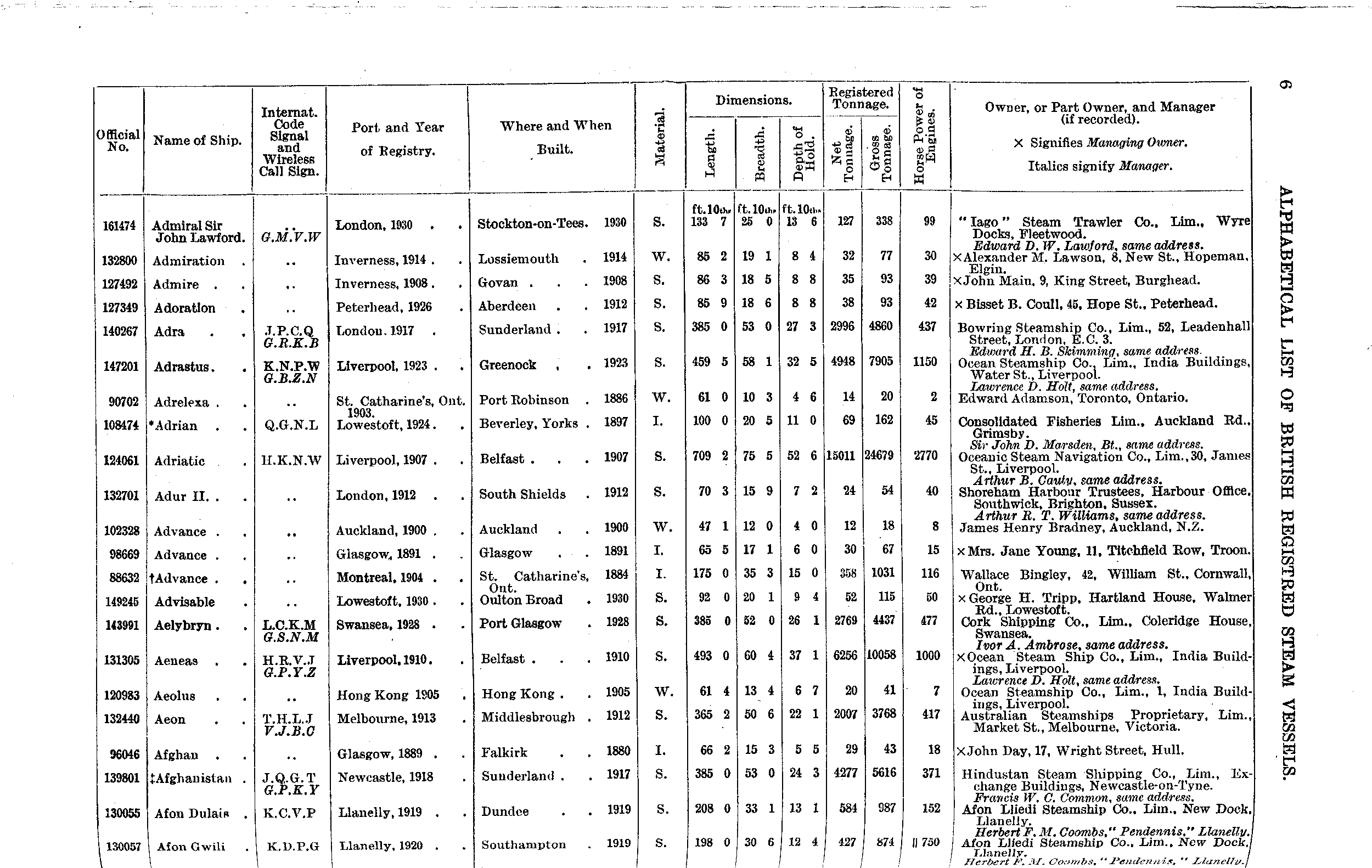 Mercantile Navy List, 1933, page 6