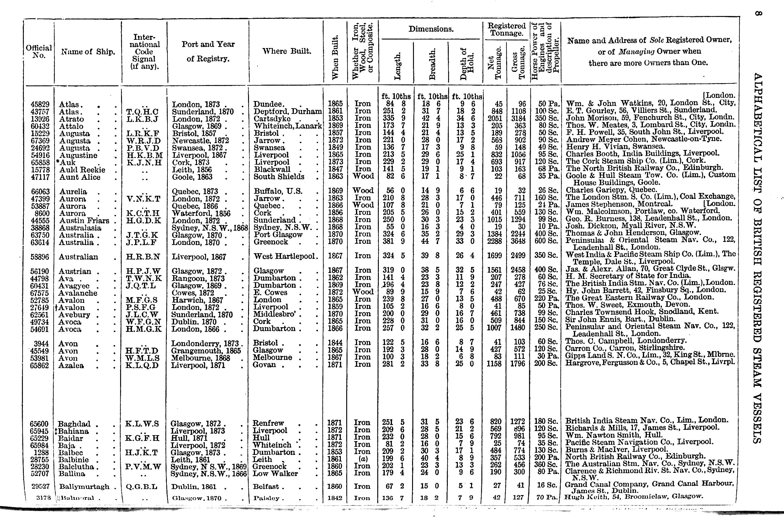 Mercantile Navy List, 1874, page 8