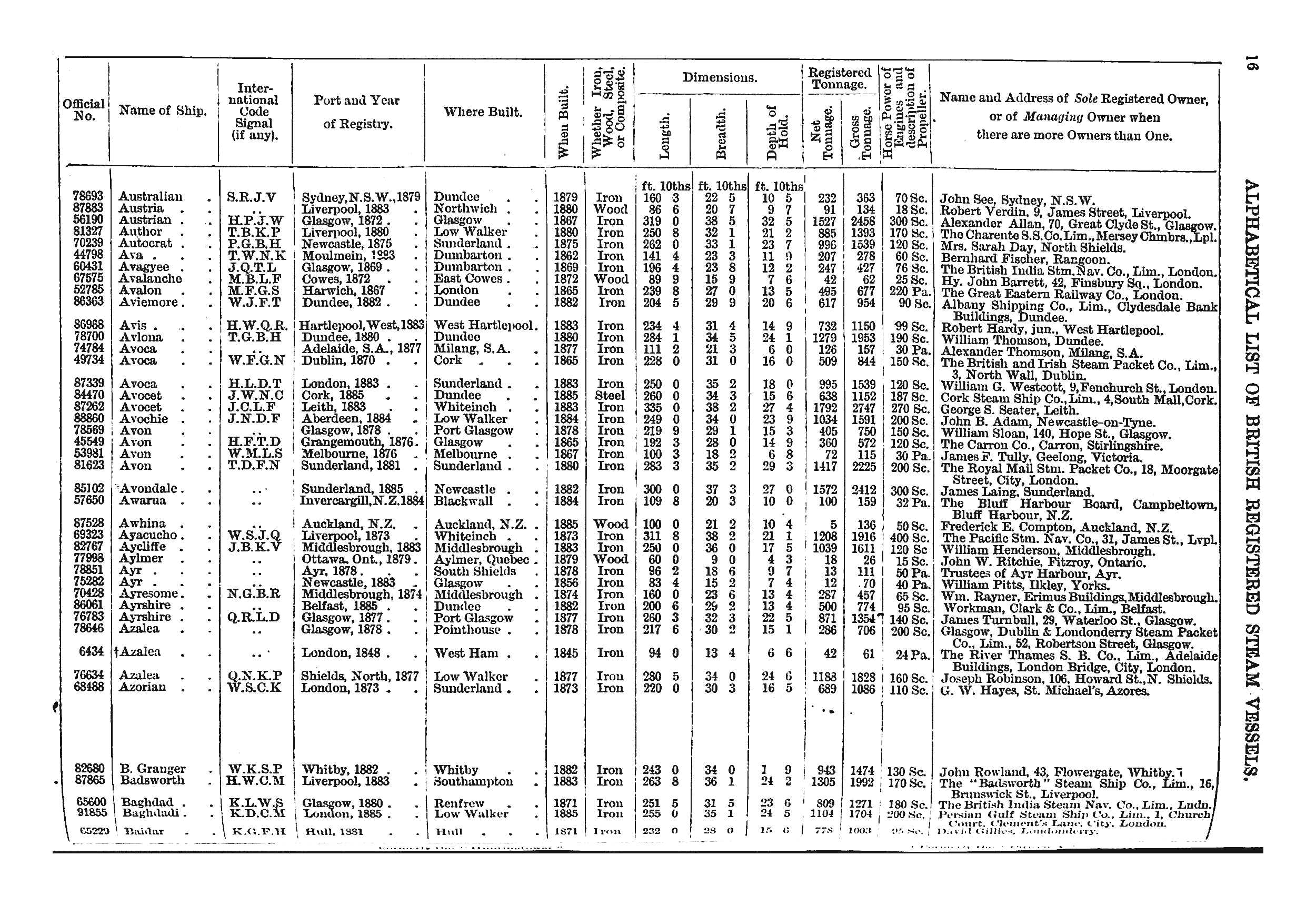 Mercantile Navy List, 1886, page 16