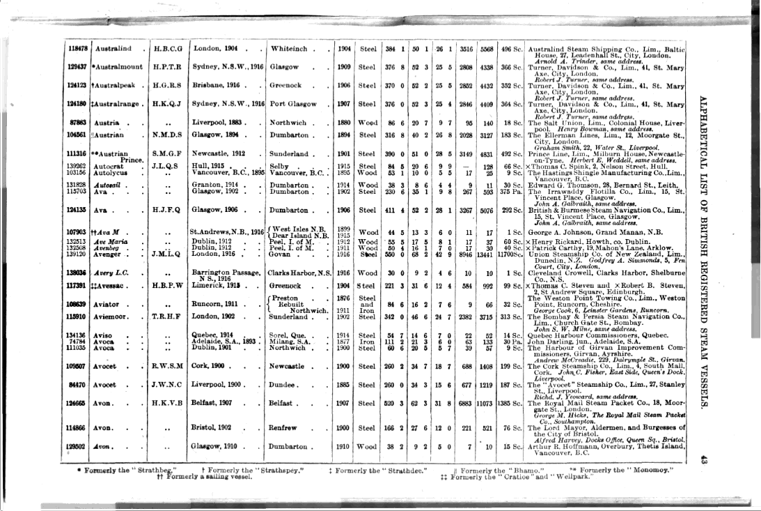 Mercantile Navy List, 1917, page 43