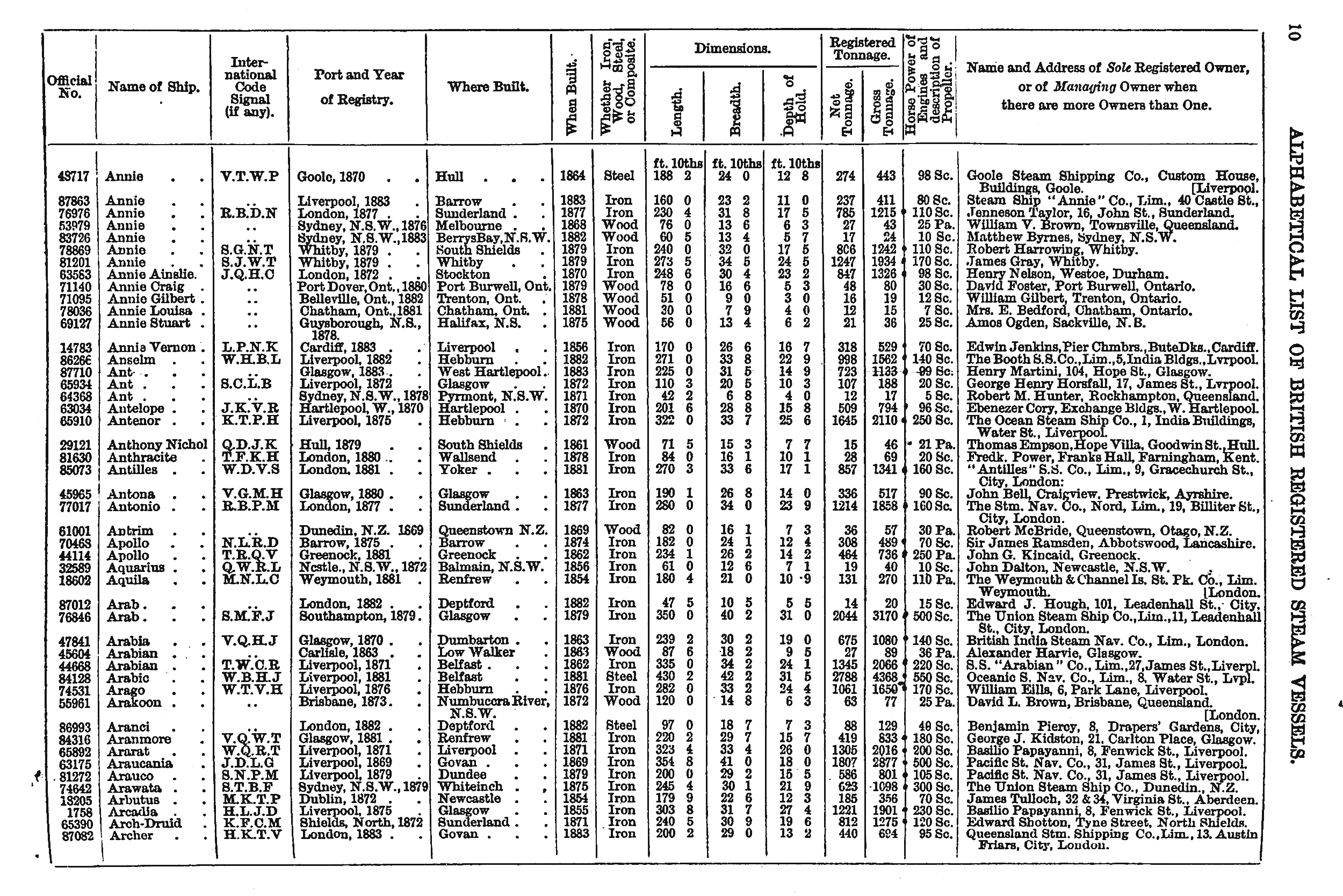 Mercantile Navy List, 1884, page 10