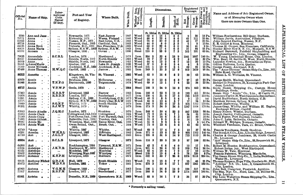 Mercantile Navy List, 1888, page 11