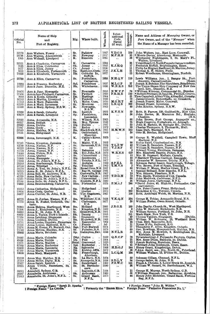 For a list of the abbreviations used in MNL for sailing vessels, see the first page of the sail section of each year of MNL. For more details and links, see our page, here: Types of sailing ships